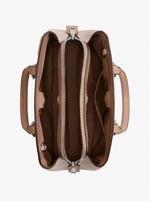Женская сумка COACH, которую можно носить на плече — спасибо за это ремешку из цепи. Его также можно превратить в две ручки. Обычно сумка исполнена в деликатных оттенках — кремовом, бежевом, карамельном и коричневом.