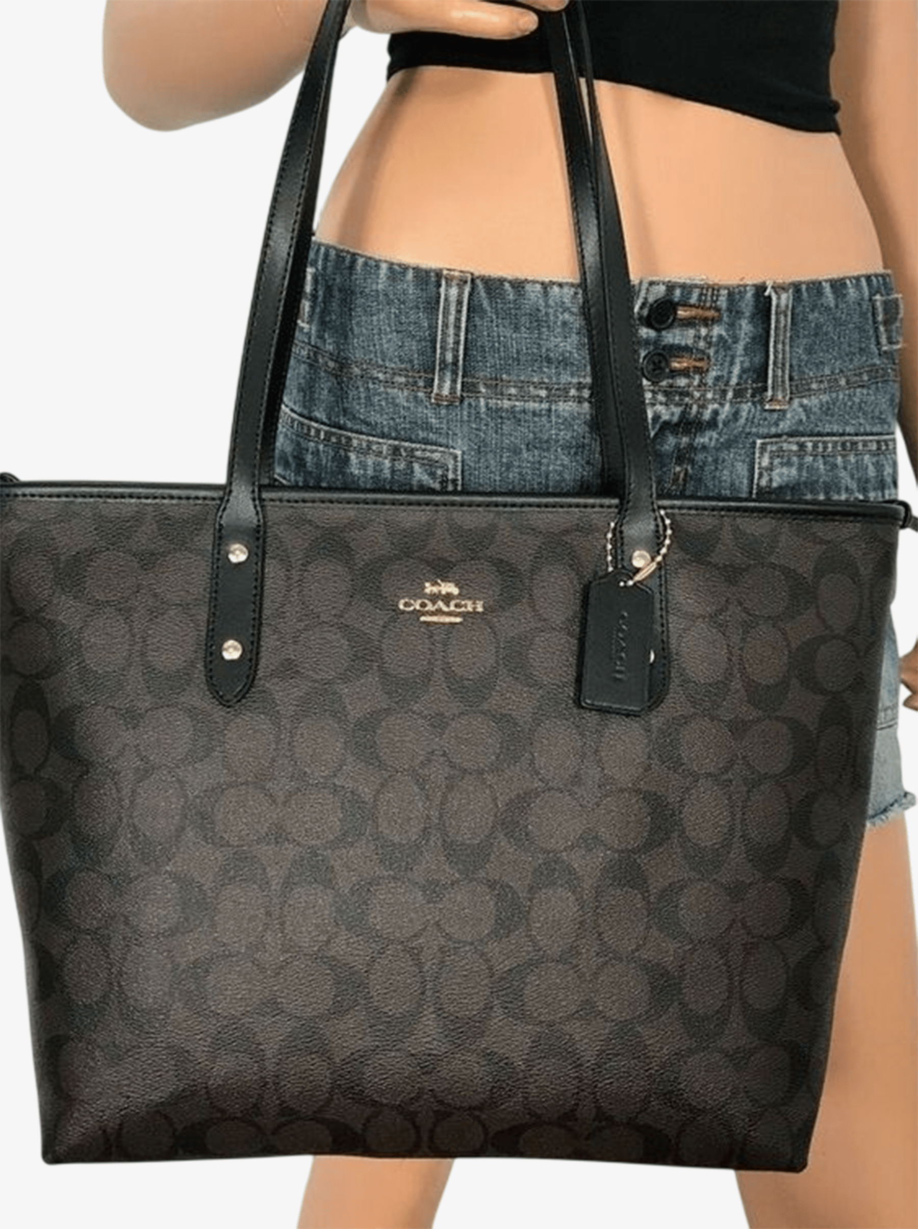 Сумка COACH Zip Top Tote In Signature Canvas Large